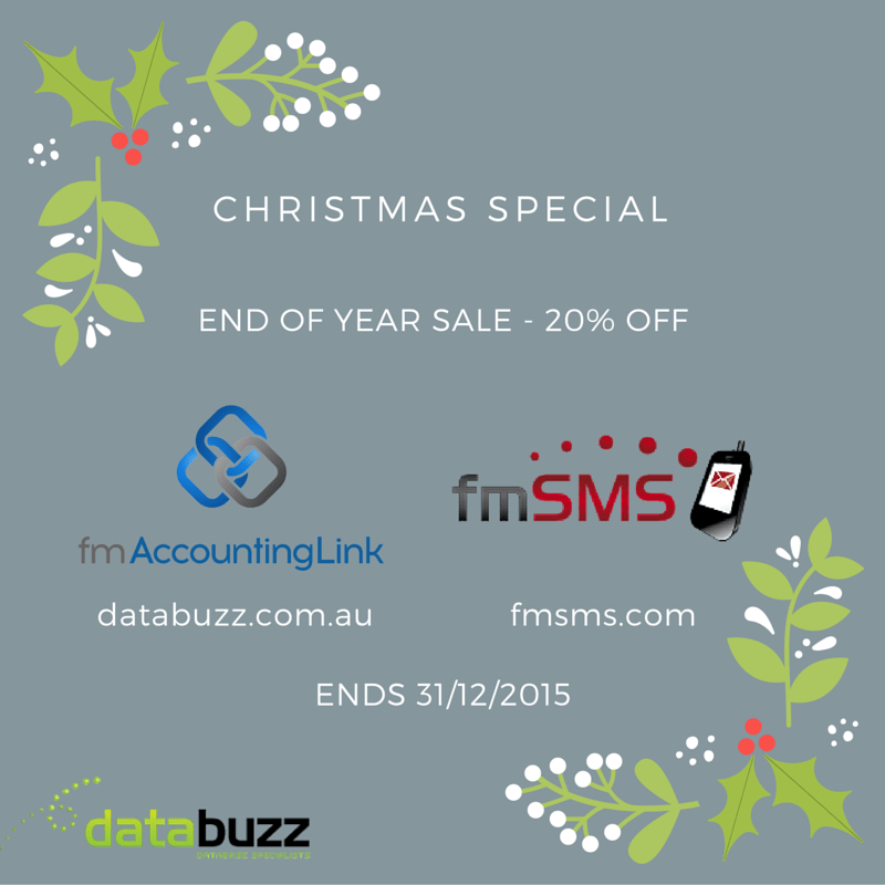 Just a reminder that the Databuzz End of Year Xmas Sale ends in just over 24 hours on the 31st December, 2015 (Australian Eastern Daylight Time). You can get 20% Off all fmAccounting Link (Xero Edition) and fmSMS Licenses