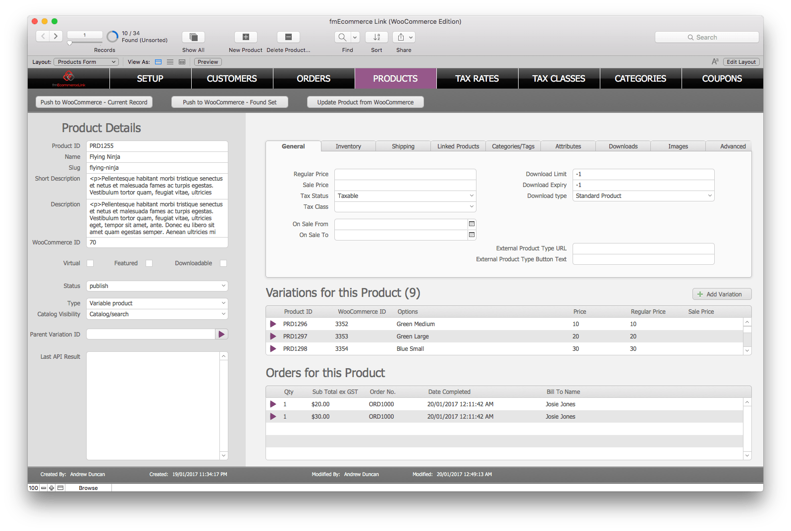 How you go about integrating the functionality from the fmEcommerce Link (WooCommerce Edition) file is entirely up to you – as the file is completely unlocked you get to go behind the scenes to learn how to handle the authentication, uploading, downloading etc and then recreate that in your existing FileMaker solution. Based on feedback from customers there have been three main ways they have approached the integration: